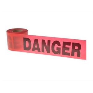 Product Description : Red with black print. Durable, nonadhesive, nonconductive plastic tape. Tape is reusable and sun- fast. High-visibility, 2 mil. thick. 3" x 300'.