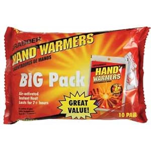 Product Description : Stock up with Mini Hand Warmer Big Packs from Grabber Warmers! Put one in your car, one in your desk, one in your coat closet and one in your emergency kit. Never be without portable heat when you need it. Air-activated Mini Hand Warmers keep hands and fingers toasty for over 7 hours. No shaking or kneading required; just open the package and put the "Original" Mini Hand warmers in your glove or pocket for a few minutes to start the process. Warmers are standard equipment for skiers, snowboarders, hunters, campers, hikers, birdwatchers or anyone who enjoys outdoor activities when the weather is cold. Warmers are widely used as portable, long-lasting heat therapy. If you suffer from cold, sore hands, fingers and toes as a result of Arthritis, Raynaud's, Lupus, Scleroderma, Sj?gren's, Myalgia or just poor circulation, Grabber Warmers provide soothing warmth. (All Grabber Warmers are designed for one-time, disposable use.)