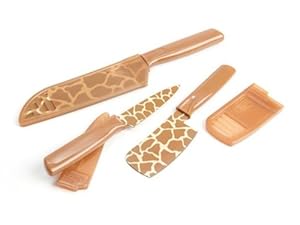Product Description : : Fashionable Kuhn Rikon Safari Colori Knife Set can handle all your kitchen prep tasks. These Kuhn Rikon knives are ultra sharp in so many ways - quality, performance, and Swiss design. Blades are Japanese high carbon stainless steel which stay super sharp. Nonstick coating ensures food will release easily from blades. Matching sheath is perfect for storage and protects blades. Let your untamed chef roam free in the kitchens these Giraffe design blades.