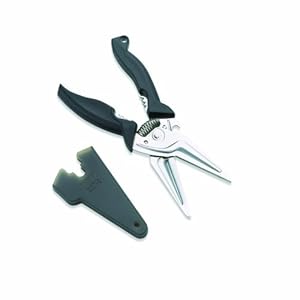 Product Description : Color: BlackAmazon.com Product Description : Cut through virtually anything in the kitchen--bones, tough stems, stubborn plastic packaging--with these handy kitchen shears in black from Kuhn Rikon, designed by award-winning Swiss designer Philipp Beyeler. They'll quickly quickly become one of your most essential tools in the kitchen with their ultra-sharp blades (which are self-sharpening for long-lasting use). They feature ergonomic, easy-grip handles, a powerful spring action that makes it easy to grip and operate, and integrated herb stripper and bottle opener. The shears come with a color-matching plastic protective sheath for safety and storage. Dishwasher safe. Product Description : The Kuhn Rikon Kitchen Shears take up where knives leave off - cutting stems, bones, plastic, wire and stay sharp. These handy shears cut through chicken bones, plastic packaging, stems and have a built-in herb stripper and bottle opener as well. Shears have a safety sheath for storage.