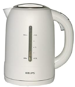 Product Description : The Krups Electric Kettle holds up to 54 ounces of water. The stainless steel concealed heating elements and powerful 1750 watts boils water quickly and safely. The trigger activated covered spout protects against accidental spilling It has a integral lime scale filter for the purest results. It is a cordless kettle with 360 degree rotational base which allows the kettle to be placed back on its base from any angle. The twin water level indicators ensures water level can be seen at all times and has an auto shut off for added safety. Cool touch handle and body, illuminated on switch, it comes with a 1 year warranty.