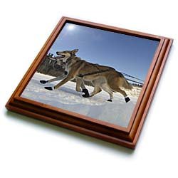Product Description : : Size: 8x8 Trivet with 6x6 ceramic tileYukon Quest Sled Dogs on the Takhini River Trivet is measuring 8w x 8h x .75d. Made of solid wood with padding on back that protects your furniture. Framed trivet comes with 6w x 6h ceramic gloss tile attached to the wood frame.
