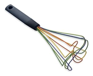 Product Description : This whisk is not your grandmother's whisk. Stirring, mixing, beating and whipping by hand can be a lot of fun. Not only can you enjoy cooking more, you save energy too. The adult in you will adore the nonstick practicality of this silicone whisk. The kid in you will love the wild colors. The Kuhn Rikon Tornado Whisk is nonstick and ideal for whisking anything from roux to gravy. Flat-bottom is perfect for saucepans and skillet/saute pans. No more scalding or uneven cooking of sauces and custards. Nonstick silicone wires are safe for nonstick cookware. Two-tone black plastic handle with hole for hanging. 10-inch. Dishwasher safe.